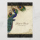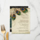 COLOR PALETTE: Black, tan, cream, royal blue, green, and rust. DESIGN: Matching Dinner Menu Card. The bride and groom's names and wedding date are on the front of this design. This antique vintage inspired wedding collection has a complete ensemble of products and can be created in several colorways. If you would like it to match your wedding let us know via email and we'll be happy to assist you. This design consists of a stately peacock on a tree branch vintage art element layered three peacock feathers and over an angel etching, swirls, antique handwriting, hand painted lace overlayed on parchment and a beautiful original art damask pattern. The background colour can be changed to match your wedding.