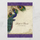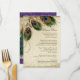 COLOR PALETTE: purple, tan, cream royal blue, green, and rust. DESIGN: Matching Dinner Menu Card. The bride and groom's names and wedding date are on the front of this design. This antique vintage inspired wedding collection has a complete ensemble of products and can be created in several colorways. If you would like it to match your wedding let us know via email and we'll be happy to assist you. This design consists of a stately peacock on a tree branch vintage art element layered three peacock feathers and over an angel etching, swirls, antique handwriting, hand painted lace overlayed on parchment and a beautiful original art damask pattern. The background colour can be changed to match your wedding.