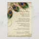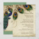 COLOR PALETTE: apple green, tan, cream, royal blue, green, and rust. DESIGN: Matching Dinner Menu Card. The bride and groom's names and wedding date are on the front of this design. This antique vintage inspired wedding collection has a complete ensemble of products and can be created in several colorways. If you would like it to match your wedding let us know via email and we'll be happy to assist you. This design consists of a stately peacock on a tree branch vintage art element layered three peacock feathers and over an angel etching, swirls, antique handwriting, hand painted lace overlayed on parchment and a beautiful original art damask pattern. The background colour can be changed to match your wedding.