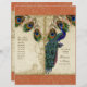 PAPER SELECTION: This will arrive flat and unfolded. You will need to fold it in half. Most print shops will do this for a very nominal fee, or you can do them yourself. Unless you are planning to have a profession print shop score and fold this DO NOT ORDER the card stock upgrade. Order it as it is set up on standard paper. COLOR PALETTE: orange, tan, cream royal blue, green, and rust. DESIGN: Matching RSVP Response Card. There is a hand lettered calligraphy font RSVP on the front of this design. This antique vintage inspired wedding collection has a complete ensemble of products and can be created in several colorways. If you would like it to match your wedding let us know via email and we'll be happy to assist you. This design consists of a stately peacock on a tree branch vintage art element layered three peacock feathers and over an angel etching, swirls, antique handwriting, hand painted lace overlayed parchment and a beautiful original art damask pattern. The background colour can be changed to match your wedding.