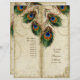 PAPER SELECTION: This will arrive flat and unfolded. You will need to fold it in half. Most print shops will do this for a very nominal fee, or you can do them yourself. Unless you are planning to have a profession print shop score and fold this DO NOT ORDER the card stock upgrade. Order it as it is set up on standard paper. COLOR PALETTE: cream, tan, cream royal blue, green, and rust. DESIGN: Matching Wedding or Formal Event Proram. This antique vintage inspired wedding collection has a complete ensemble of products and can be created in several colorways. If you would like it to match your wedding let us know via email and we'll be happy to assist you. This design consists of vintage art elements layered three peacock feathers and over an angel etching, swirls, antique handwriting, hand painted lace overlaid parchment and a beautiful original art damask pattern.