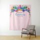 Beautiful and elegant peacock feathers & flowers Quinceañera blush pink photo backdrop. Beautiful and elegant Quinceañera photo backdrop set against a blush pink background. This peacock feathers and floral design of purple, blue, green, and pinks is the perfect accompaniment for your daughter's Quinceañera party. Personalise with your information. Perfect for those who love peacock feathers and flowers, a unique way to celebrate her 15th birthday.