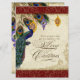 PAPER SELECTION: This is shown on "basic paper", another great choice would be "metallic ice" which is a clean white, pearlized shimmery surface. It would also be beautiful on "Champagne Metallic" linen, felt or any of the other choices. COLOR PALETTE: deep burgundy red, tan, cream royal blue, green, and rust. DESIGN: This antique vintage inspired Christmas collection has a complete ensemble of products and can be created in several colorways. If you would like it to match your event let us know via email and we'll be happy to assist you. This design consists of a hand calligraphy hand written font "Merry Christmas" and a stately peacock on a tree branch vintage art element layered three hand painted, watercolor ornaments by Audrey Jeanne Roberts, and three peacock feathers over an angel etching, swirls, antique handwriting, hand painted lace over layed on parchment and a beautiful original art damask pattern. The background colour can be changed to match your wedding. On the reverse side is another set of ornaments over the peacock feathers and your invitation information. There are matching envelopes, tickets , seals, stickers, labels, favour gift tags, seating charts, table numbers and table seating cards to make customising your event simple and painless! Quantity discount and bulk pricing are available for larger events.