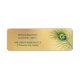 This wedding labels features a peacock feather on a gold background.