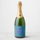 PEACOCK FEATHER MOTIF PATTERN BIRTHDAY BLUE GREEN SPARKLING WINE LABEL