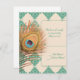 Peacock Feather on Teal Moroccan Tile RSVP Card