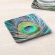 Peacock Feather on Turquoise Coaster
