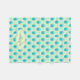 A bright peacock feather oval patterned teal aqua, blue green blanket. Personalise with your own name and initial currently reads Monica R. Designed by Sarah Trett.