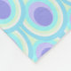 A bright peacock feather oval patterned purple, aqua, blue, green and white blanket. Personalise with your own name and initial currently reads Linda H. Designed by Sarah Trett.