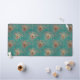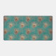 Peacock feather pattern glitter teal gold elegant desk mat