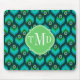 Peacock Feather Pattern Monogram Personalised Mouse Mat