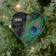 Unique peacock feather Christmas Ornament with a customisable year. The black velvet background of the still life makes the bright colours of green and blue of the peacock feather looks absolutely vibrant and stunning. If you're decorating with a Peacock Christmas Theme this year this is beautiful.