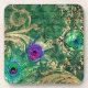 This bright design has vibrant purple and green peacock feathers plus a green and blue butterfly with a green background of gold embellishments and cursive writing. Make sure to check out the matching throw pillows!