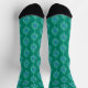 Socks in a peacock feather textile print, executed in Adobe Illustrator and Photoshop - light aqua / seafoam feathers, with an eye in shades of cobalt blue, lime green, turquoise and white, on a deep turquoise / peacock blue background