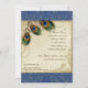 PAPER SELECTION: This is shown on "basic paper", another great choice would be "metallic ice" which is a clean white, pearlized shimmery surface. It would also be beautiful on "Champagne Metallic" linen, felt or any of the other choices. COLOR PALETTE: tan, cream navy blue, green, and rust. DESIGN: This antique vintage inspired wedding collection has a complete ensemble of products and can be created in several colorways. If you would like it to match your wedding let us know via email and we'll be happy to assist you. This design consists of a stately peacock on a tree branch vintage art element layered three peacock feathers and over an angel etching, swirls, antique handwriting, hand painted lace overlayed parchment and a beautiful original art damask pattern. The background colour can be changed to match your wedding.