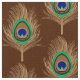 Peacock Feathers, Camel Tan on Chocolate Brown Fabric