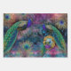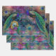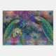Peacock Elegant Feathers Glitter Pink for Decoupage or Gift Wrapping. There are 3 sheets, one image is reversed right to left to use for cabinet doors etc. (some small handwriting elements will be backwards). A bright and colourful fantasy style vintage and modern art painting of elegant Peacocks in bold shades over shimmering peacock coloured background with gold glitter Peacock feathers, flowers, twinkling star backdrop. Art graphically designed by internationally licensed artist and designer, Audrey Jeanne Roberts. Copyright.