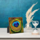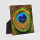 A name plaque with a stunning closeup photograph of a vibrant and beautiful heart shaped blue eye of a gorgeous turquoise and gold peacock bird feather. Personalise by adding your name. Perfect way for bird lovers to say: I love Peacocks!