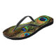 A pair of Peacock Feathers Flip Flops with a photograph of some detailed beautiful peacock feathers. Walk with style.