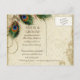PAPER SELECTION: Postcards are printed on a very nice, very heavy stock that is glossy on the front side and matte finish on the reverse. COLOR PALETTE: horizon blue, tan, cream royal blue, green, and rust. DESIGN: This antique vintage inspired wedding collection has a complete ensemble of products and can be created in several colorways. If you would like it to match your wedding let us know via email and we'll be happy to assist you. This design consists of a stately peacock on a tree branch vintage art element layered three peacock feathers and over an angel etching, swirls, antique handwriting, hand painted lace overlayed parchment and a beautiful original art damask pattern. The background colour can be changed to match your wedding.