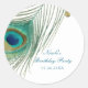 Peacock Feathers & Gold Dots Boho Glam Party Classic Round Sticker