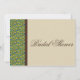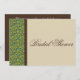 Elegant design bridal shower invitation. Cream and brown background, and peacock feathers design on the side.