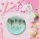 Peacock Feathers & String Lights Rustic Party Plates. Make the background any colour.