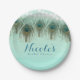 Peacock Feathers & String Lights Rustic Party Paper Plate
