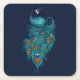 Peacock Feathers Teal Peacocks Square Paper Coaster