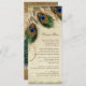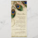 COLOR PALETTE: gold metallic, tan, cream, royal blue, green, and rust. DESIGN: Matching Dinner Menu Card. The bride and groom's names and wedding date are on the front of this design. This antique vintage inspired wedding collection has a complete ensemble of products and can be created in several colorways. If you would like it to match your wedding let us know via email and we'll be happy to assist you. This design consists of a stately peacock on a tree branch vintage art element layered three peacock feathers and over an angel etching, swirls, antique handwriting, hand painted lace overlaid on parchment and a beautiful original art damask pattern. The background colour can be changed to match your wedding.