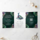 Peacock Floral Feather QR Code Emerald Wedding Tri-Fold Invitation
