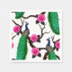 Peacock birds perching on branches and pink camellia flowers, this pattern is hand drawn in Photoshop.