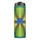 If you love the colours of a peacock, this design will be great for you. It features shades of green, gold, and blue arranged from dark to light that gives the circle a 3D look with some styling to resemble a peacock's feather.