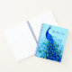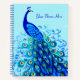 Journal in a fantasy peacock with a lavish tail, in shades of deep turquoise and cobalt blue, on a soft aqua background with customisable text