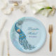 Elegant Peacock and lace theme with an Art Nouveau feel. Lovely Aqua and teal tones with hint of purple. Background is a delicate tone on tone lace floral pattern. Customise the names and date, or delete all text if you would like this paper plate without. Matching theme available on other products in my store.