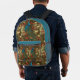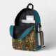 This Asian inspired backpack features lovely teal and blue peacocks with green and orange plumes and feathers, with lovely purple plum colored flowers and lanterns in a lovely old tree. The trim is in a coordinating peacock teal color, with your optional initials in gold on the side. Either replace the initial with your own or delete if you prefer not to have initials. This would make a nice gift for a student or a great bag for hauling your books, crafts, or gym clothes wherever you travel.