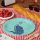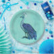 This exquisite peacock design is filled with pearls, jewels, and feathers. The peacock is an original watercolor and pencil design digitally combined with a cold wax and oil background. The overall effect is majestic and ready to enhance any party.