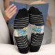 I love these Mona Lisa Christmas Socks! They are soft and very comfortable. The print looks great, on all sides including the most stretched area around my calf.