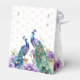 Peacock and purple flowers watercolor Indian wedding template favour gift box. Two beautiful peacocks purple jasmine flowers wisteria hanging blooms and garlands favour boxes for peacock purple themed functions