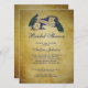 Peacock Rustic Bridal Shower Invitation. BlissfulWedding © at Zazzle. These gorgeous invitations are perfect for a vintage peacock themed bridal shower. Two beautiful peacocks on vintage banner and text in a dark blue font all on a printed tea-stained vintage paper background (distressed look photo effect), create a unique, stylish romantic bridal shower invitation. Other colours available.