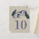 Burlap Linen Peacock Rustic Wedding Table Number Card. This gorgeous wedding table number card design is perfect for a Vintage Wedding with the ability to personalise with your monogram initials. Its unique design with Two Beautiful Peacocks on Vintage Banner and text "Mr. and Mrs." in a dark blue font all on a printed linen photo effect background, create a unique, stylish wedding table number card. Elke Clarke© Please order one table card with the first number on it. Then change the number in the edit menu and add the next table number card to your cart until you have one unique card for each table number in your cart. Need help or would like a different colour combination, please contact luxuryweddinginvitations@gmail.com