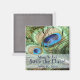 Beautiful Peacock feathers close-up on this Wedding Announcement Save the Date Magnet. They will look at this often and not forget your upcoming date!
