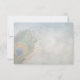 Stylish RSVP card with vintage peacock and ornate scroll top border on watercolor look background in blue tones. Back of invitation has same background with peacock feather. Coordinating pieces available in store.