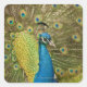 Peacock strutting square sticker