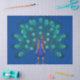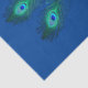 Tissue paper with image of a peacock against a blue background.