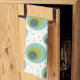 This fabulous mid century modern kitchen towel features 3 oval shapes, in the colours of turquoise, avocado green, and blue, along with dots, diamonds, and doughnut shapes. This will make a charming addition to any kitchen!