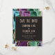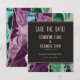 This "Save the Date" card glimmers with the elegance of nature’s artistry, where stone and shimmer meet in harmony. Like treasures carved by the earth, slices of agate shine in graceful bands of peacock hues, each edge kissed with molten gold. The striking composition captures the organic beauty of natural stone, elevated by a touch of opulence.