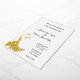 This wedding invitation is shown in a modern layout with a gold foil peacock and border trim.