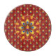 Beautiful chopping board with peacocks' feathers Rangoli. Colourful Rangoli is traditionally drawn with the fingers using flour, rice grains or coloured chalk. At Diwali, Hindus draw bright Rangoli patterns to encourage the goddess Lakshmi to enter their homes. This awesome Rangoli is made of peacocks' feathers and little Diya lamp in the middle.
