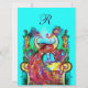 PEACOCKS IN LOVE MONOGRAM red blue turquase green Invitation